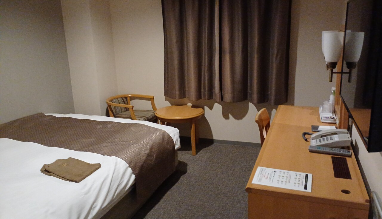 今治駅から徒歩すぐ。まずは本館があり、50mくらい離れた所に新館がある。新館を1泊利用。1階のフロントは数段、階段を登るがスロープもあり便利。チェックイン時に朝食の和食か洋食かを選択する。今治観光には立地がよかった。