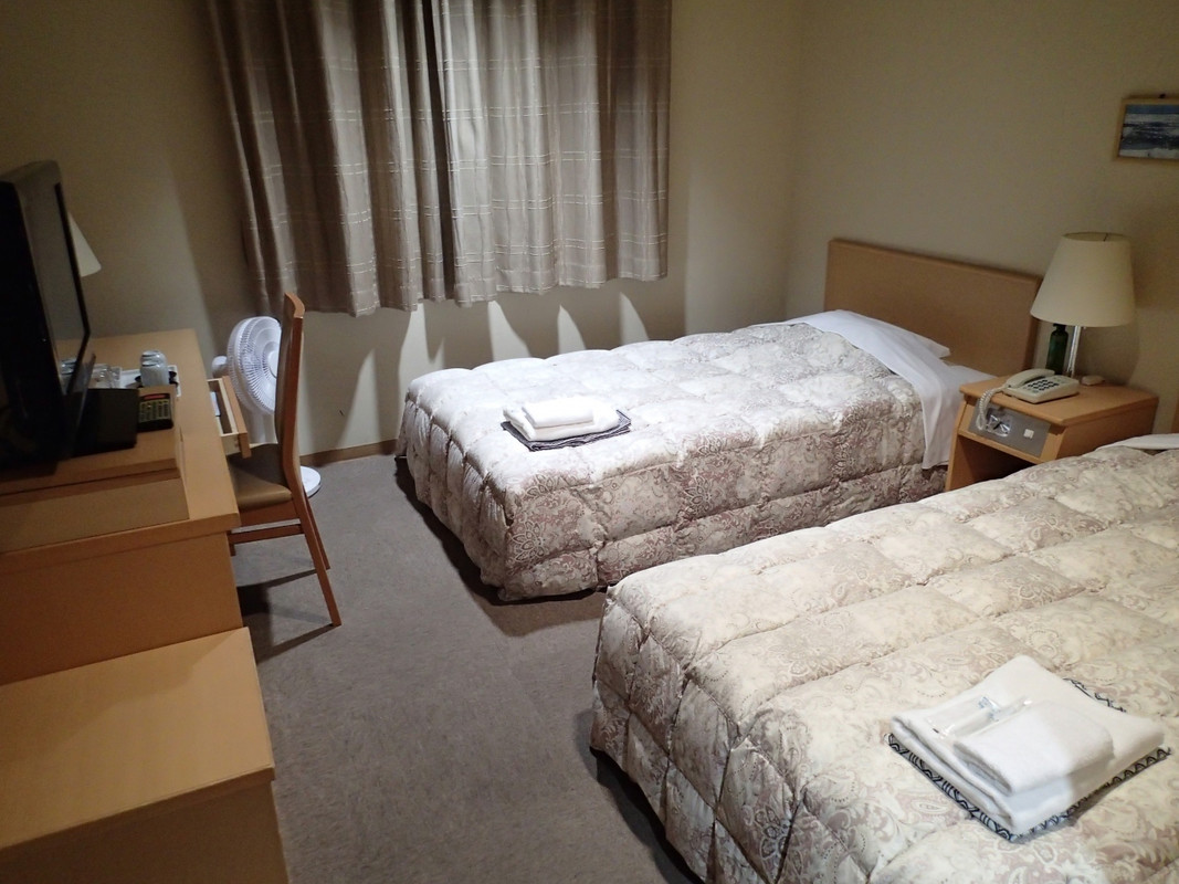 直前に部屋探しをしたため選択肢があまりなかった中から安いところ、と言っても土曜日なので1人で1泊10,000はかかりましたが、を選びました。畳部屋の狭い部屋でしたが、1人なので不自由はしませんでしたが、一般のビジネスホテルなら確実にもっと安いのにと思う部屋でした。難点は近くに食事のできるお店がないことです。コンビニが少し離れた所にあるので利用しました。丁度マラソン大会が開かれるためホテルはどこも一杯だった様で部屋程度の割には高い料金になっていたのでしょう。
