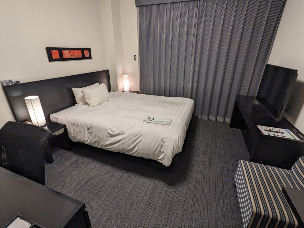 天文館の繁華街真っ只中のホテル。アーケード街にありました。当日予約で7000円ポッキリ+全国旅行支援でお得に泊まれました。さて初のリッチモンド系列ですが、無難な黒の内装、広めのお部屋でビジネスマンを意識している感じです。空調の効きが悪かったのが難点ですが、それ以外は良かったですね。