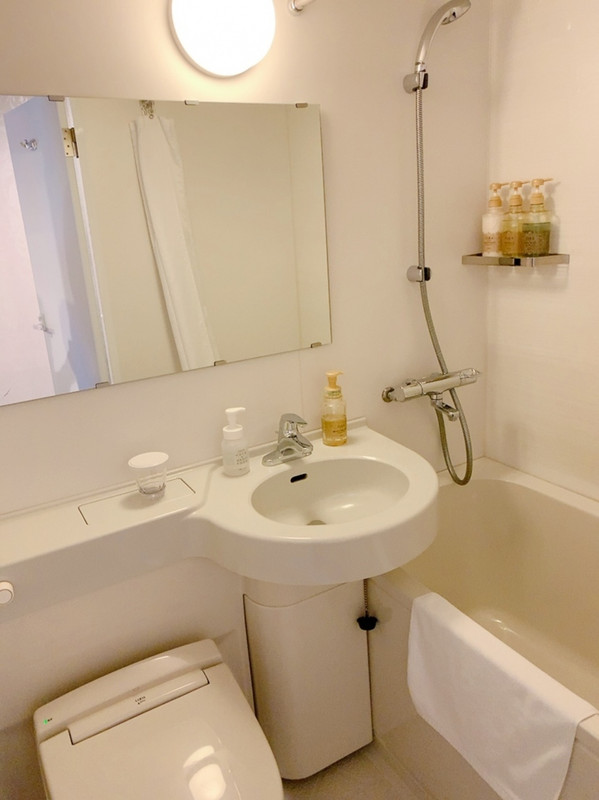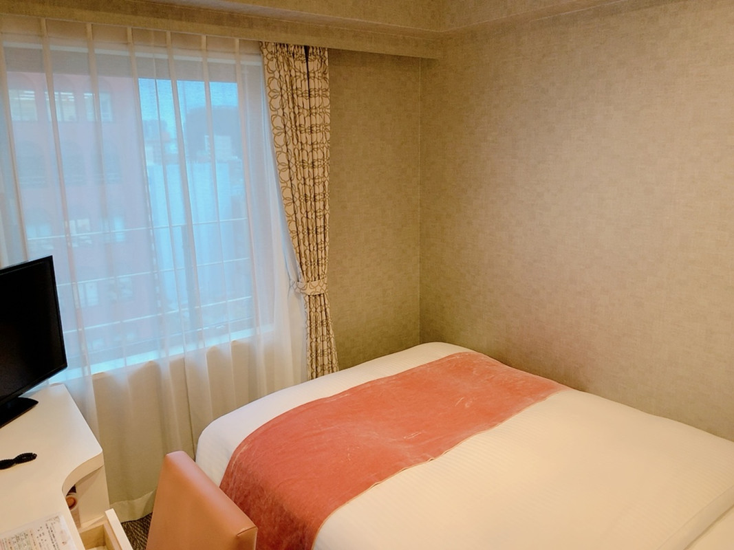 都会のホテルなのでお部屋はかなりコンパクトです。 ただ、ベッドは140cm幅なので1人での利用なら十分広く、快適に眠ることが出来ました。 新しいホテルなので、ベッドの傍にコンセントやUSBポートなどもあるのでスマホの充電も出来ます。 24時間換気のバスルームの換気扇と保冷庫のモーター音がかなりうるさいので、ONのままだと夜眠れないかも?! 普段なら気にならない私も、さすがにOFFにしました…。 大阪駅近くの、扇町通り沿いに建つホテルなので、12Fの部屋でも、夜中も救急車のサイレンなどが何度か聞こえてきたりしました。 うるさい環境だと寝られない方にはあまりオススメ出来ないホテルかな…。
