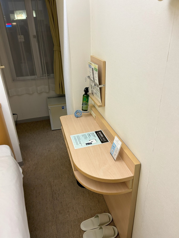 でも価格が駅地下で一人でも4000円代というやすさなので、価格にしたら部屋はこんなものではと思います。ポット、毛布、加湿器、スマホ充電器なども借りれたし、ポットはでもフロアごとに給茶機があるので、お湯がでるし、紙コップがおいてあるし、氷もそばにマシーンがある。ただカップルとか女子旅とかそういうニーズには向かないと思う。お子さん連れも静かにおとなしくできる自信があればかまわないと思いまうすが、音が響くので、ちょっとあれかもです。1 / 1