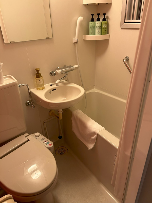 部屋によるかもだけど、ちいさな冷蔵庫は部屋にあった。お風呂はかなりこじんまり。