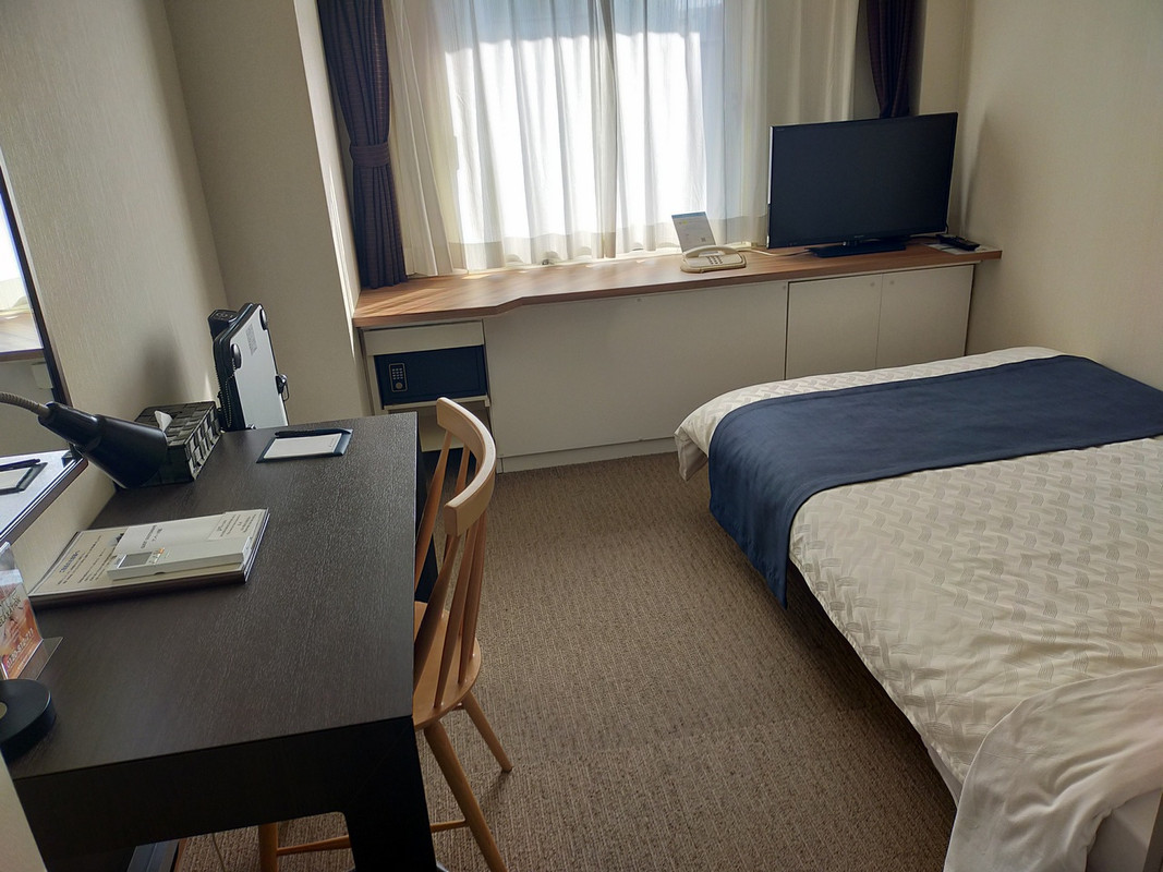 阪急線十三駅から徒歩8分くらいのところにあり、ちょっと遠く感じました。ホテルを出たところにラブホテルがあるのが、あまり良くない点です。とても大きなホテルで19階まであります。1人でシングルルームに2泊泊まって素泊まりで33,000円強でした。シングルルームでも客室が少し広かったです。万博会場の夢洲駅からは2回乗り継ぐ必要があるのが少し不便でした。