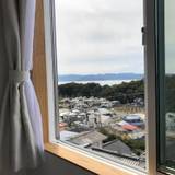 瀬戸内海が見える気持ちのよい部屋です。テラスに出るとより気持ちが良く、夜風に当たってお酒を飲みたい雰囲気です。白をベースにウッド調の入ったオシャレなホテルで、海の近くに来た感じがします。お風呂が無くシャワーのみですが、シンプルに泊まるには十分です。アメニティグッツはありますが、寝間着は無いので持参の必要があります。