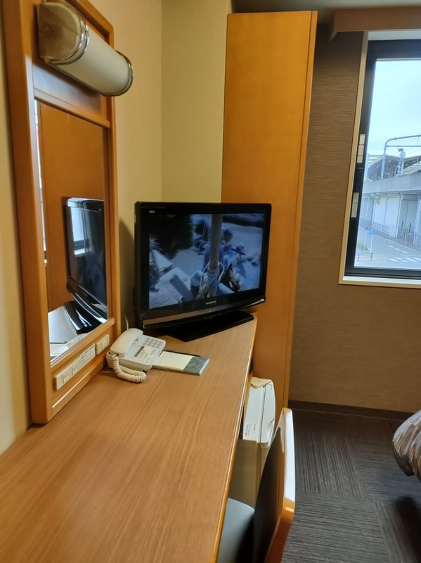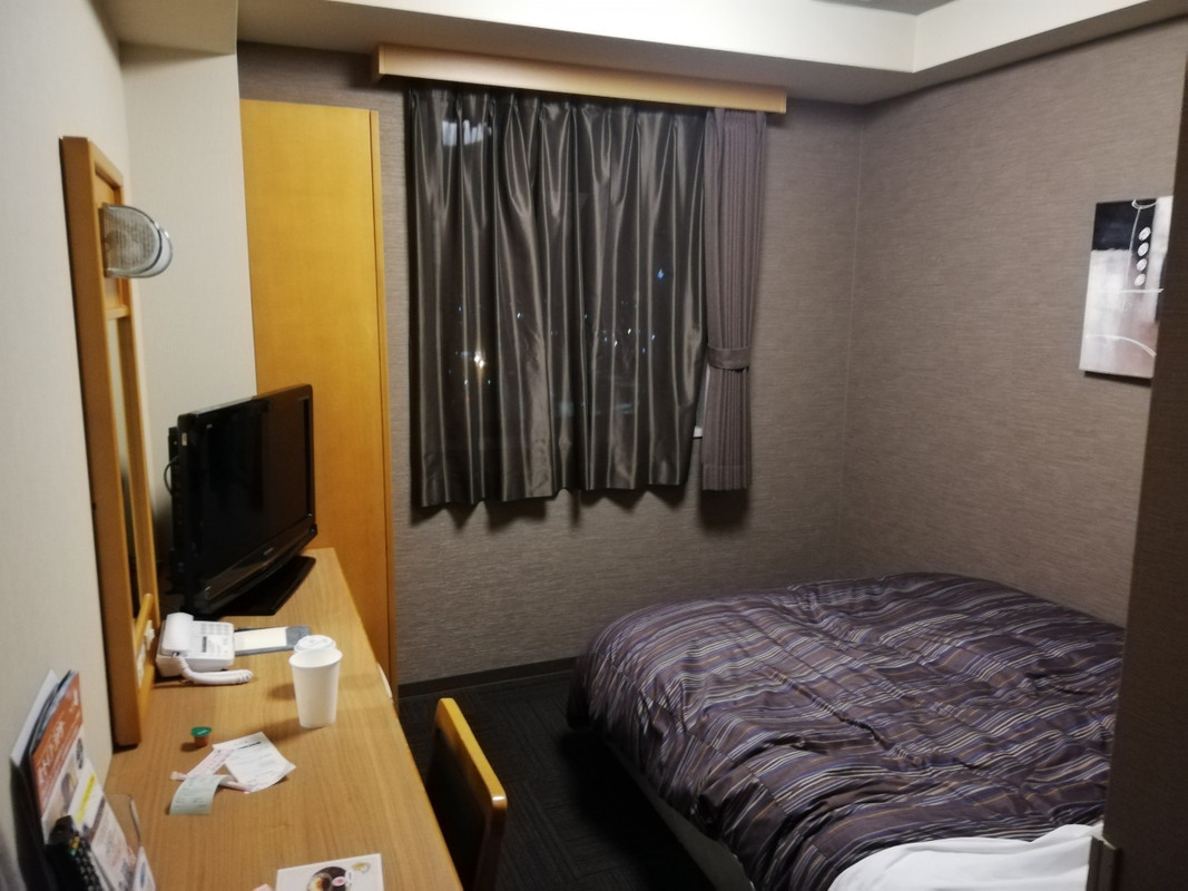 狭い 客室でも東横インはベッドの下にスーツケースが入るのですが こちらはそうではないのでスーツケースを開ける場所がほとんどありませんでした。