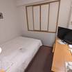 お部屋は狭くて古く、汚れが目立ちます。壁紙がベローンとなっています。