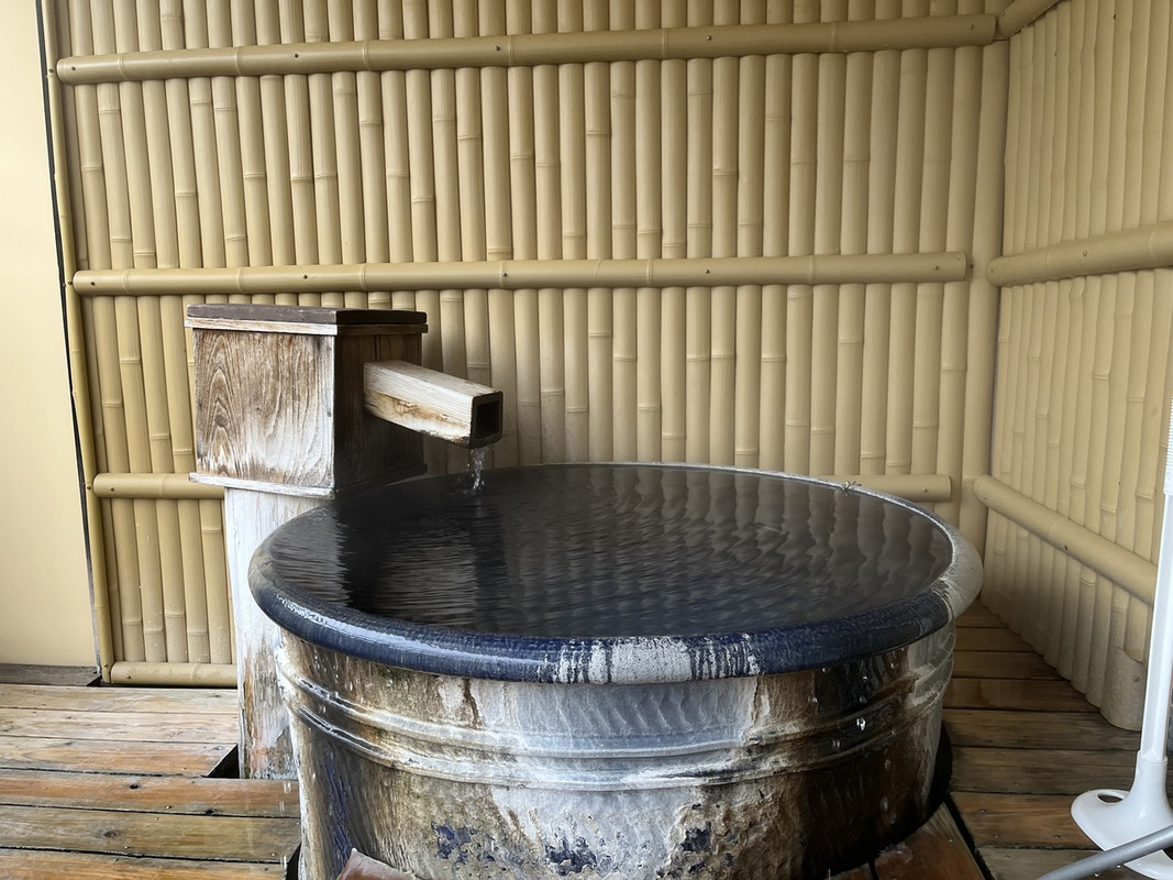 部屋付きの露天風呂のある部屋にしましたが、風呂桶は陶器製で少し狭めです。朝は夜に雪が降ったのでお風呂に入る時に滑りそうになりちょっと危なかったです。熱めのお湯で水で調整をしました。泉質は良かったです。受付の所でたくさんのこけしさんが出迎えてくれます。