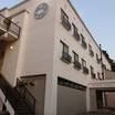 施設の正面 (日没後)