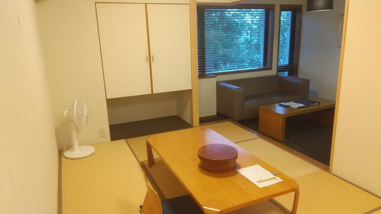 ホテルは宮ノ下の坂のカーブの道沿いにあるが大きな看板でないので見逃しやすい。静かなたたずまいでフロントのあるロビーも広くゆったりとしている。ただ、エレベータがなくて部屋から地下にある大浴場までの移動に骨が折れる。夕食はメインのすき焼き鍋に付き出しのいたってシンプルな献立。朝食は鯖焼きが付いた所謂お膳。大小の風呂は女性と男性の入れ制。場所柄なのか結構一人客が多い。
