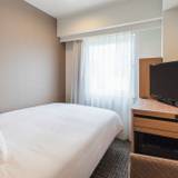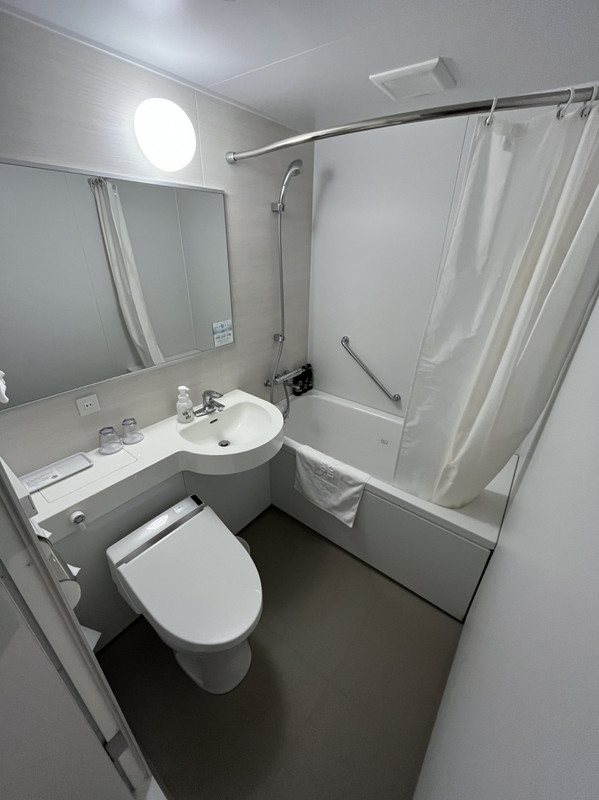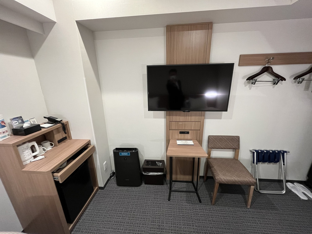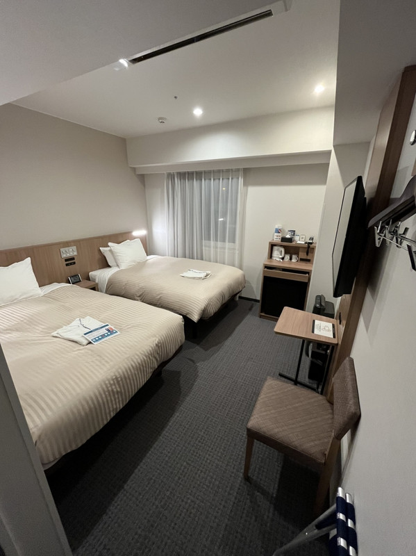 部屋は狭い。ベッドがダブルで、ほとんどベッドが占めてしまう。デスクスペースは、テレビ台。アメニティは、フロント前から取るようになっている。ここのチェーンは入浴剤があるので、バスタブに入ろうという気になって良い。- アクセス4.0