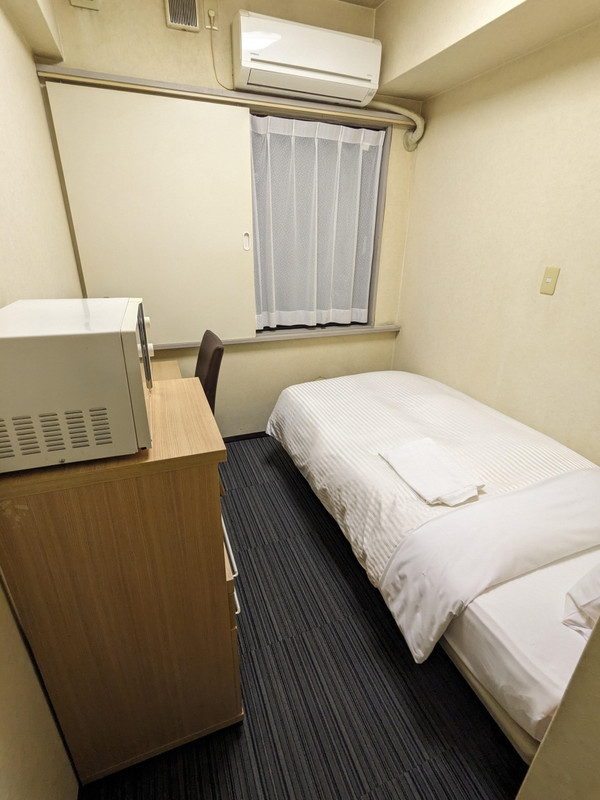 古くなったワンルームマンションをホテルに転換したもの。鍋や電子レンジなど取り揃えてあるので、中長期で泊まるのに便利な作りになっている。中はまさに殺風景なワンルームマンションなので泊まるだけの人用かな。それなりに快適ではある。