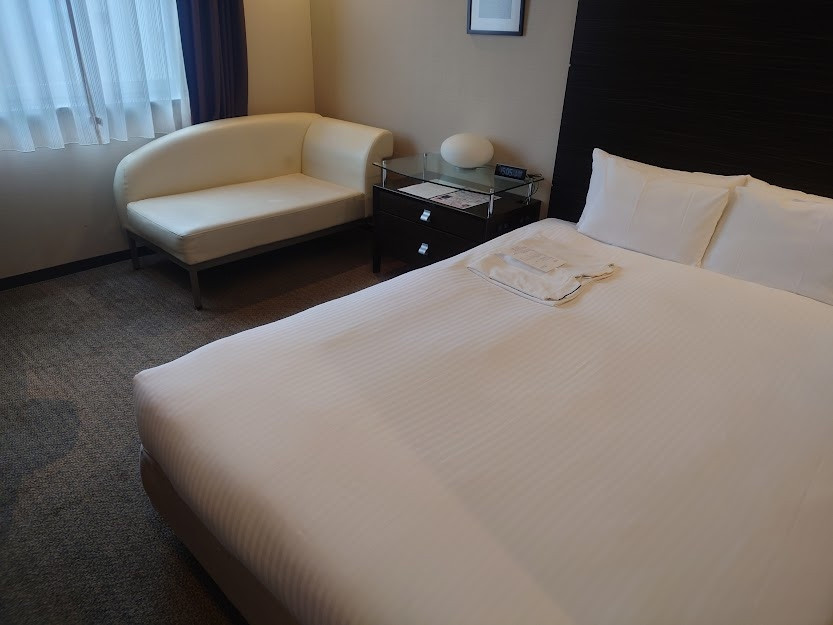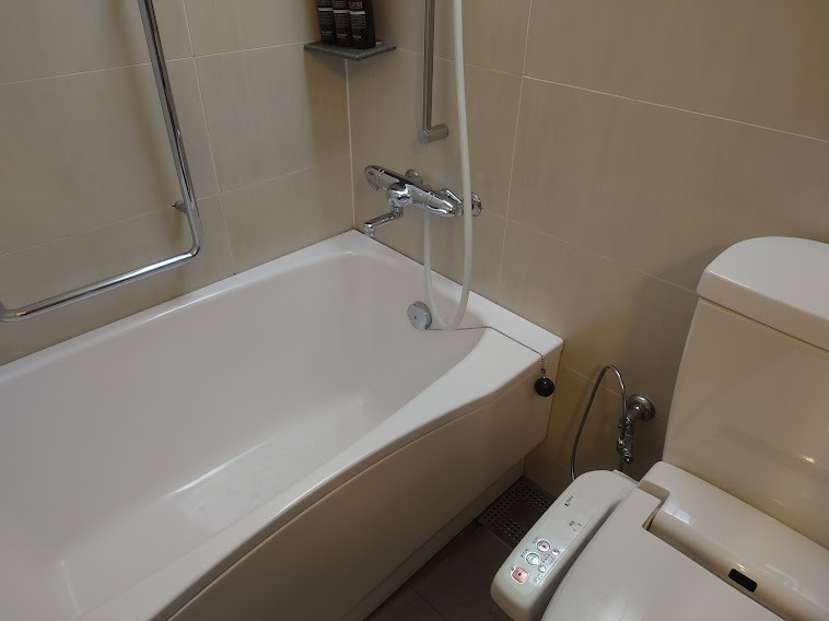 私の部屋はダブルで、カードキーも二枚くれる。お連れの方は後から来ますか、と聞かれたので、ホテル81(あれよりはるかに立派だが)みたいなノリなのかも。エレベーターはキーをかざす方式で、セキュリティは案外しっかりしている。部屋には小さいソファーまであり、湯舟も大きく、アパタワーはもちろんの事、グレイスリー新宿よりもいいかもしれない。ただし、少し古いが。Wifiはやや弱いがコンセント類は十分。お茶セットもきちんとしまわれていて、テレビはBSも入る。風呂は近所のサウナに行ったので利用しなかった。