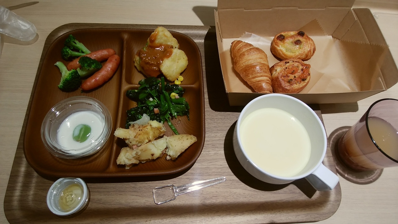 朝食はご飯はなしのようですが、パンはおいしく、総菜類も必要十分。テイクアウトにも対応していました。