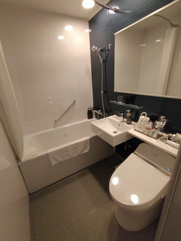比較的新しいホテルということで予約を入れた。チェックインは機械式でルームキーが出てきた。部屋も十分な広さがあり問題なし。客室のモニターで最上階にある大浴場の混雑度がわかるので確認し入湯、洗い場や脱衣所は決して広くなく、露天でもないが、大きな窓があり開放感はあった。朝食は和食と洋食のバイキングでお寿司を握ってくれるサービスもあり、結構良かった。