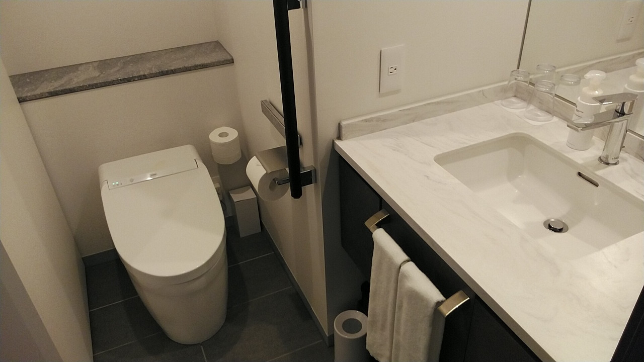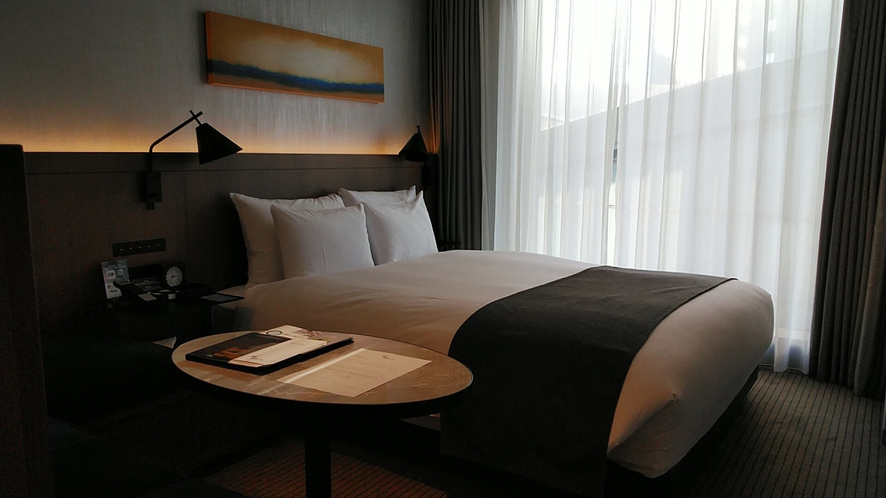 駅至近、JR経営のホテルが隣同士なんですね。フロントホールは広い。エレベータは3基。部屋は広め。新しいので気持ちがいい。デスクがないので広く感じるのか。