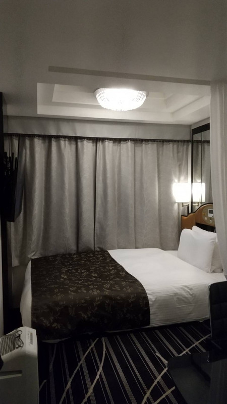 部屋はアパホテルスタンダード、狭いが素泊まりには不満はない。広いベッド、大画面のテレビ、また大浴場があり疲れをいやすことができる。アパホテルとしては高めであるが、都心にあるホテルとしてはリーズナブルな値段と言える。1 / 6