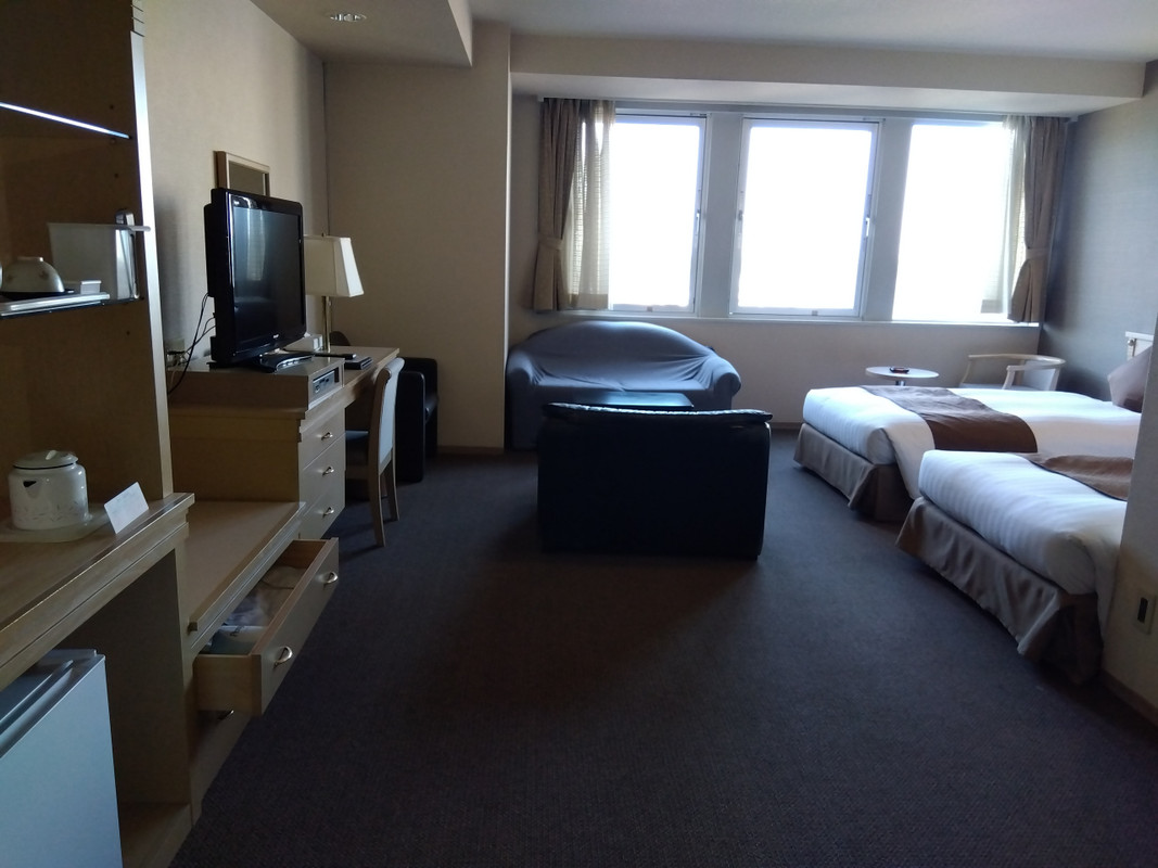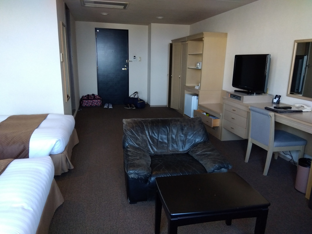 コンセントは窓側や洗面所側の壁とベッド横にあり不便はなかったものの、ハンガーが4つ、リンスインシャンプー(10ml)が2つなど、不足するものもありました。