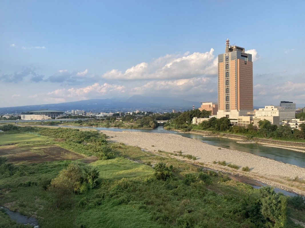 利根川と赤城山と群馬県庁を臨む立地
