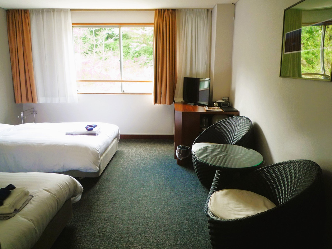 ホテルを選ぶ時は料金、和室or洋室、眺望、温泉、料理などで決めます。このホテルはちょうど「湯けむり」の近くにあり、眺望もよかったです。