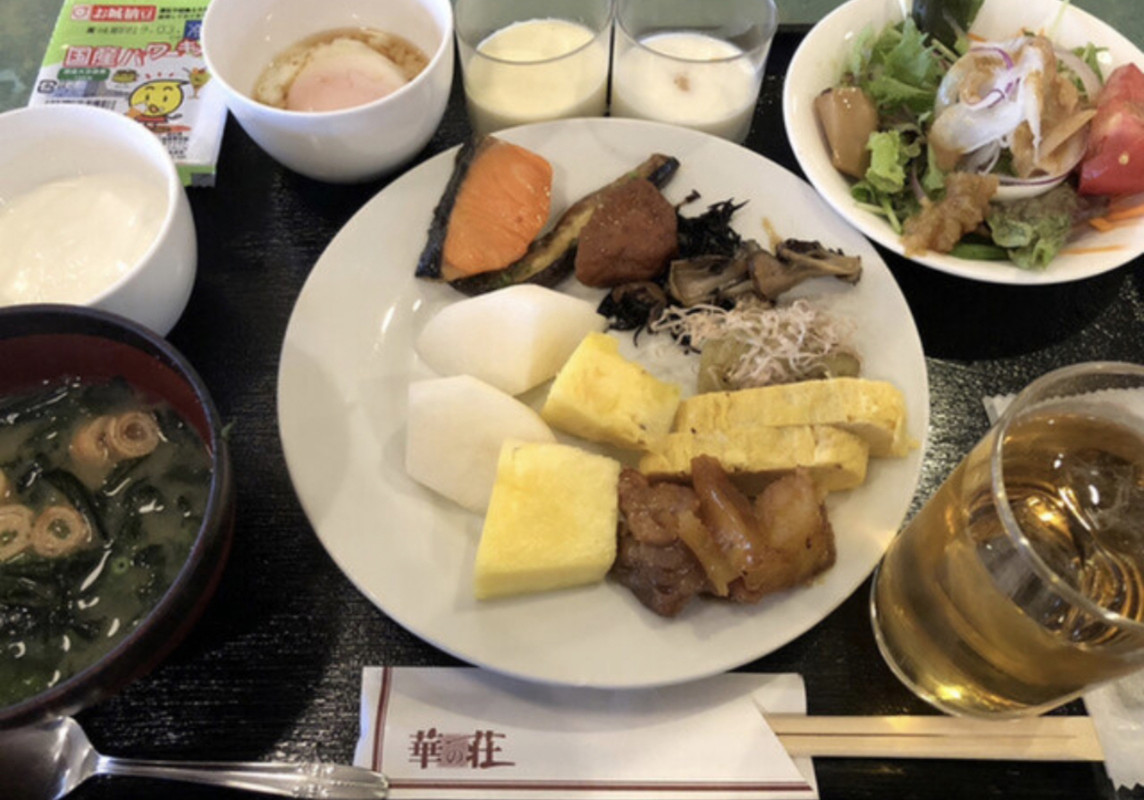 人吉駅からクルマで10分弱でしょうか、少し離れた高台にあるホテルです。1泊2食付きで夜は焼き肉というパターンもあります。焼肉は特筆するところはありませんが、朝のバイキングはメニュー豊富でした。
