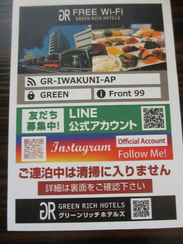 錦川鉄道に乗るため、前泊しました。周辺のホテルより少し高めの料金設定のように感じますが、館内は清潔で繁華街も近く使い勝手が良いです。都合により人工温泉、朝食ともに利用できませんでした。これらのサービスに問題なければ、料金は妥当だと思います。