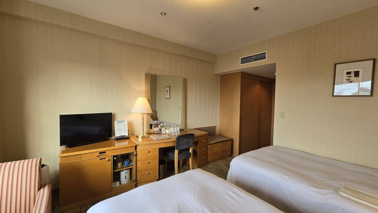 いつもは信濃川萬代橋ビューの部屋を予約しますが、今回は街側のスタンダードツインを予約しました。部屋は26㎡で窓側にソファーにテーブル、ベッドも寝やすく快適でした、リクエストで加湿空気清浄機を用意してくれます。眺望も新潟の古町方面の景色に佐渡ヶ島も望め街側も良かったです。館内で食事やテイクアウトのケーキも楽しめゆっくりできました。スタッフの対応はオークラの良さを感じる接客で今回も心地よく滞在できました。