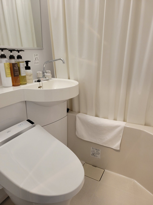 施設はとても新しく気持ちが良いです。エレベーターのボタンも非接触対応。室内着(上下別々タイプ)はフロント横にありそこから持っていきます。枕もいろんな種類を選べます。デフォルト枕はもちろん室内にあります。枕元のコンセント、USB、スイッチもバッチリ。室内に加湿機能空気清浄機あり。室内のアメニティも必要なものはひととおり揃っていますが、何しろこちらには大浴場があるため、持ち出し用のアメニティが充実しています。フロントの女性もとても笑顔で気持ちよいです。ここからは敢えて言うとの部分。女性用大浴場はそんなに大きくないです。特にロッカー使用時、二人が重なっただけでも使用がしんどいです。客室内にはクローゼットがなく、かけた服が室内にぶら下がっている状況となります。空港リムジンバスや電車、フェリー等の利用時はアクセス抜群とはいえません。ただホテルは繁華街にあり、ひととおりの場所は徒歩圏内です。
