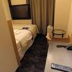 宿泊した部屋はセミダブルベッドがあり、枕側には照明・エアコンの集中パネルがある。