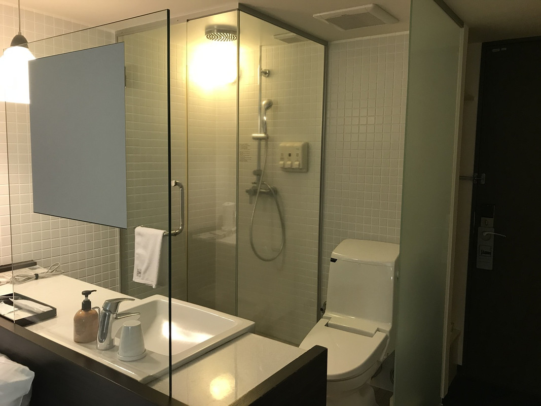 良かった点は、低層階だが眺めが良かった事のみ。夜景を眺められる。しかし、カーテンを開けると狭い部屋なので何処にいてるか外から丸見え。これはこれで最悪。(夜外歩いてカーテンが開いている部屋を見て下さい、実感します。)