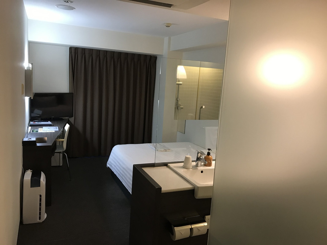 ラブホ街の真っ只中にあるホテルは、見方によってはラブホとの間違えそうな周りに溶け込む外観。部屋もやはりラブホ感強かった。
