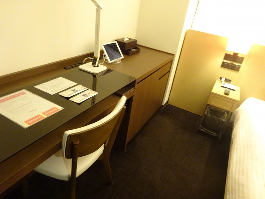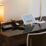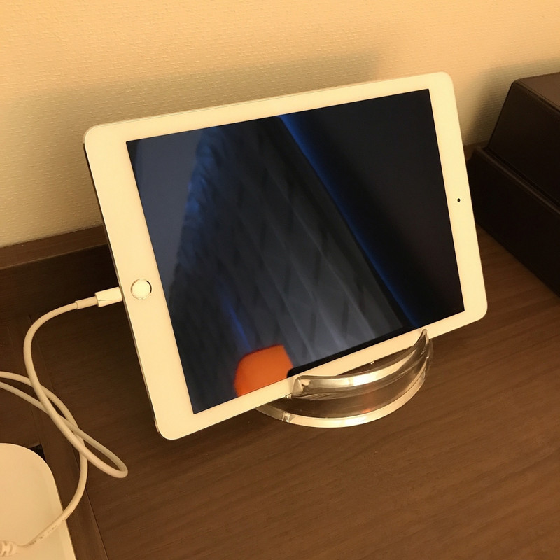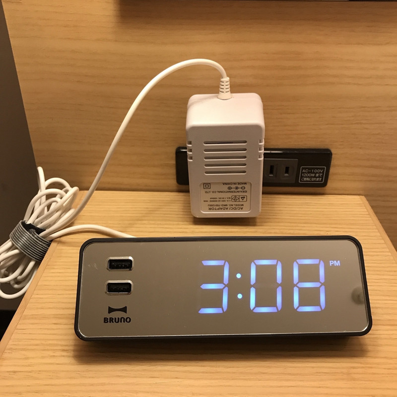 ・電源周りですが、ベッドサイドに電源があります。USBポートはベッドサイドに置かれた時計にあります。