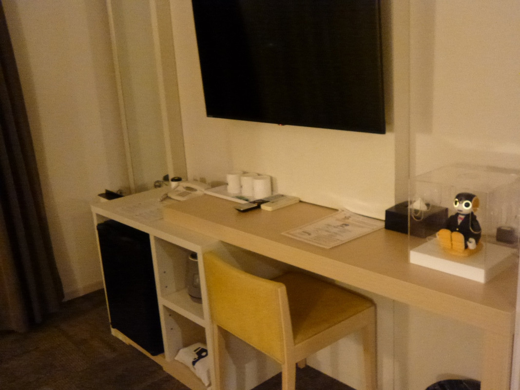 ディズニーランド行きではなかったのですが舞浜宿泊。ロビーに入ると恐竜の世界が。チェックインカウンターで、恐竜ロボットにに応対してもらい大人でもなんだかはしゃいでしまいます。部屋はシンプルで、コンパクトながらも使いやすかったです。部屋にも小さなロボットがいて、話しかけると電気をつけたりしてくれ子供は楽しいだろうなと思いました。