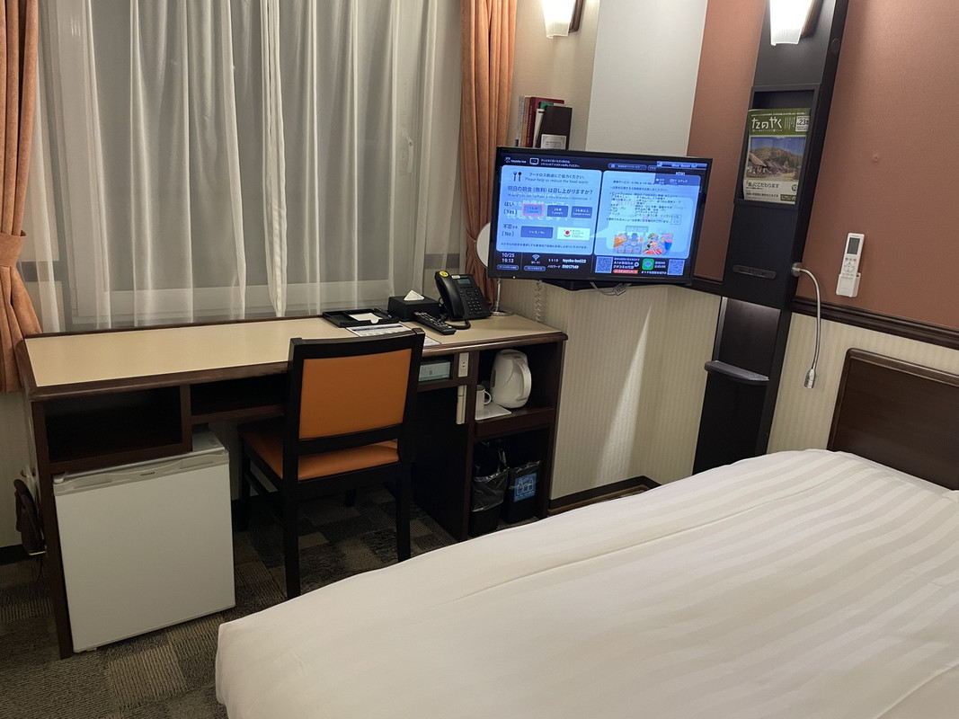 11㎡の部屋は普通のビジネスホテルと同じで特徴なし。朝食は和洋中バイキングだが品数少ない。WIFI・ウォッシュレット完備。1 / 5
