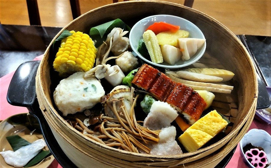 夕食はお造りから蒸し物、しゃぶしゃぶ、焼き物などありボリューム満点。