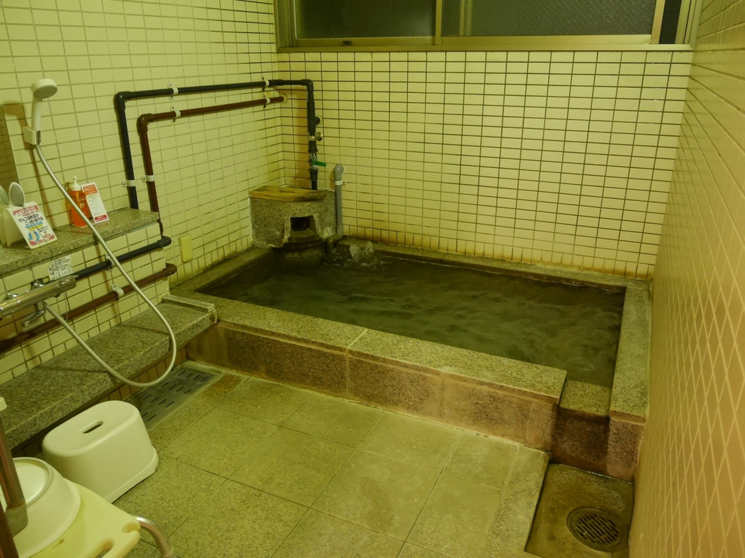 宿には個室の貸し切り温泉があって、宿泊者はフロントで予約して無料で利用できます。