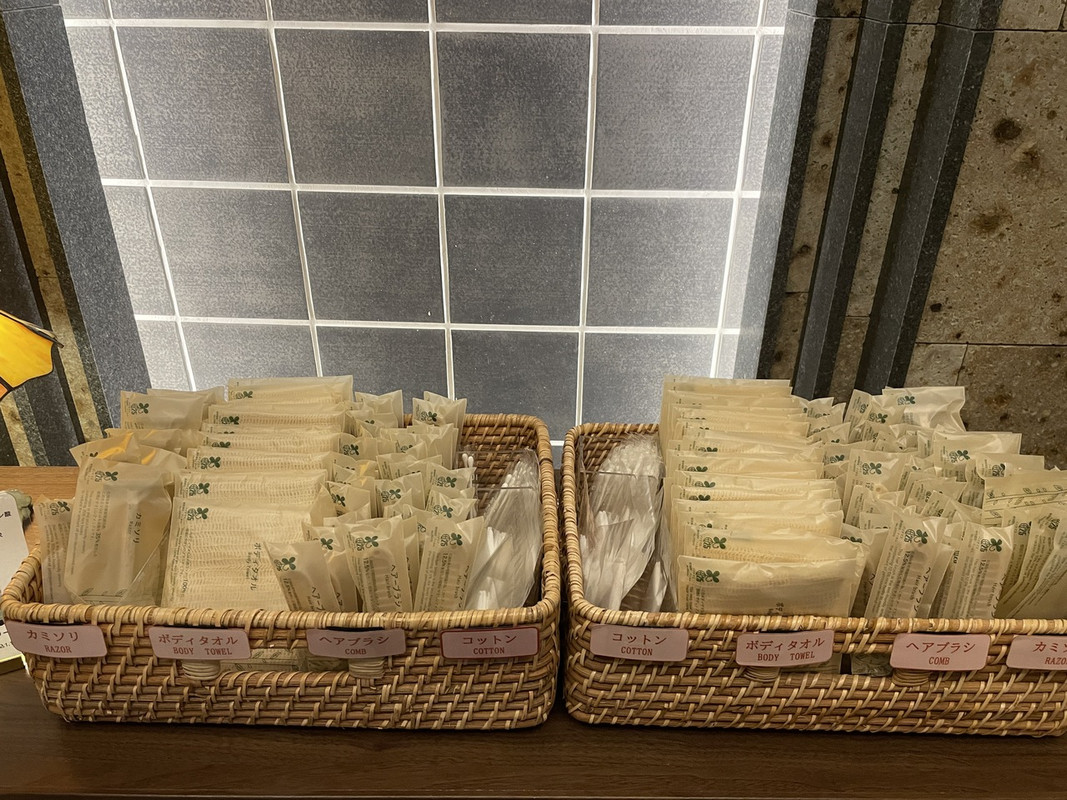 シャンプー・コンディショナー・ボディソープ・洗顔(ハンドソープと兼用)しかないため、クレンジング用品やその他スキンケア用品は持参する必要があります。