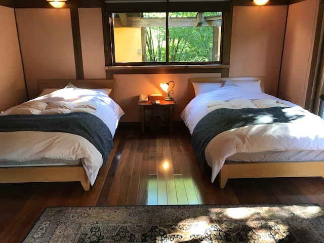 広い敷地に建てられた趣のある建物です。今回は「三村の棟」という特別室に宿泊しました。お部屋はとても広かったです。テラスもあり、朝は外でコーヒーを飲んでのんびりしました。自然が多くそこが魅力であると思いますが、季節柄、虫なども多く見かけました…我が家は苦手なので大きいものなどはちょっとびびってしまいましたが、宿の人が対応してくれますので安心です。