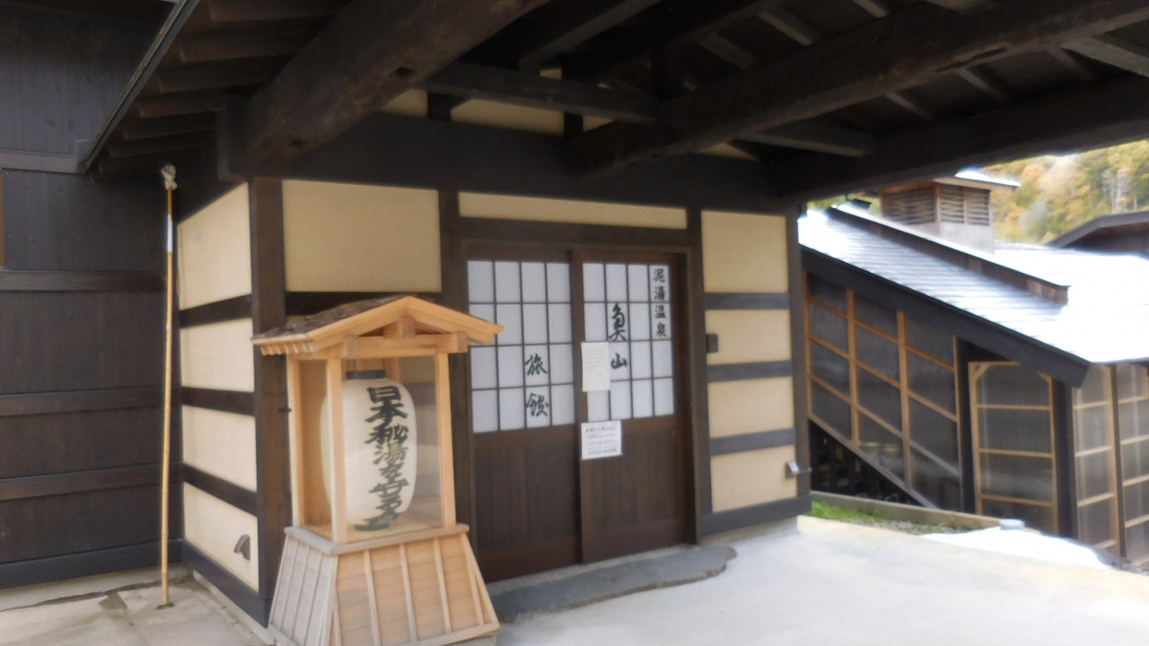 秋のシーズンでの宿泊は2名以上なので立寄り湯で利用した。温泉は異なる源泉を引いた「新湯」「天狗の湯」「川の湯」があり、立寄り湯で利用できるのは「天狗の湯」のみ。利用可能時間は10:30から13:30と短い。湯船は内湯と3つの露天風呂で、お湯は名前の通り泥色をしていた。人気の湯だけに多くの立寄り客がいた。