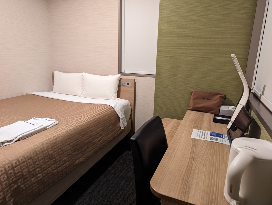 部屋については普通のビジネスホテルという感じの造りで、部屋の広さもまずまずありました。ベッドはダブルなので大きく、寝心地も良かったです。清潔感もしっかりしていて、ユニットバスもきれいでした。前泊で利用しただけなので長居しなかったのですが、快適性も十分にある部屋だと感じました。