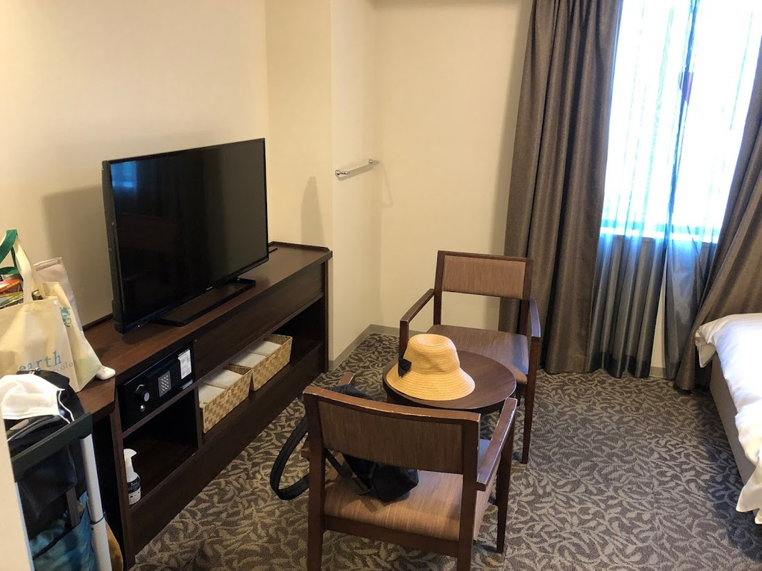 新しいドーミーインなので施設も綺麗で、部屋の中の引き戸には武田の紋があったり、姿見鏡には葡萄の絵が彫ってあったりと遊び心もチラホラと見受けられました。