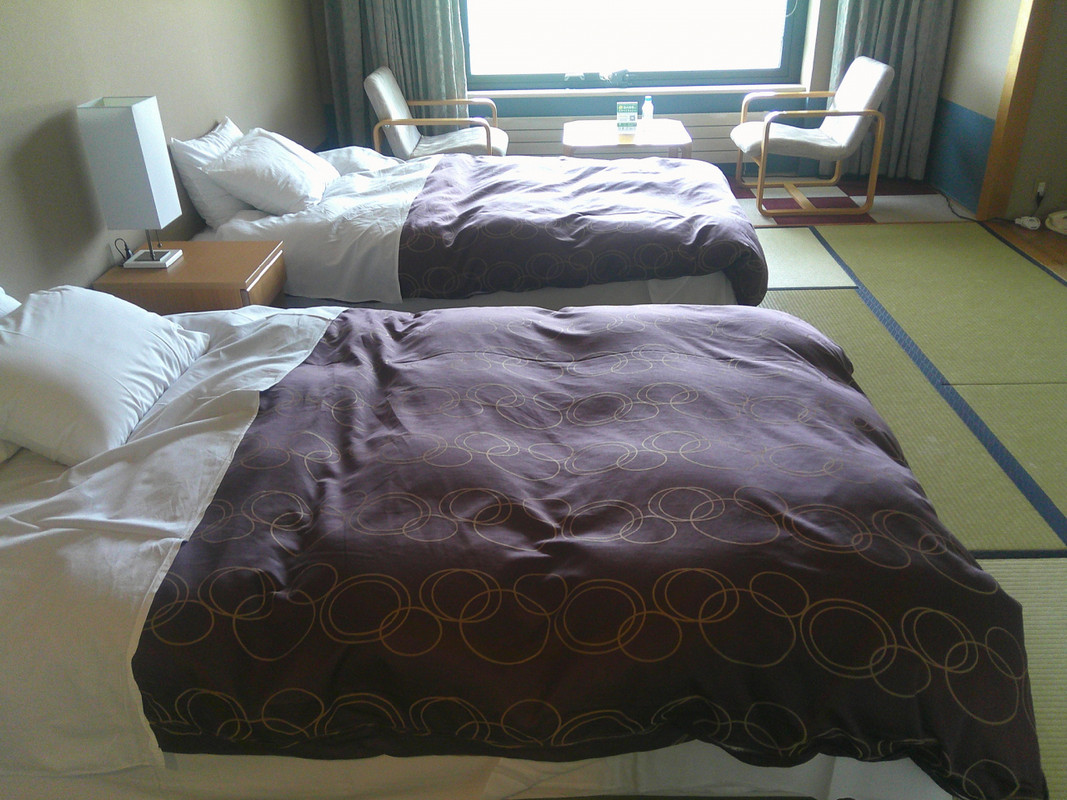 冬は大型のスキーリゾート施設として賑わうようですが,私たちが訪れたのは初夏の時期だったので,余り混雑はしていませんでした.敷地は広く裏山までがホテルの敷地になっているようでした.部屋は和室にベッドを置いたもので,26平米くらいあるとのことでしたので,広さ的には十分でした.温泉は大浴場のみのようです.部屋にもバスはありますがビジネスホテルのような感じのユニットバスでした.テレビは小さく14インチくらい.金庫がありました.また冷蔵庫は普通のビジネスホテルよりも少し大きめで良かったです.食事は朝夕ともバイキング形式ですが,特にこれと行った特徴はなく,ビジネスホテルの食事のような感じでした.一応カニや甘エビもありましたが,小さかったです.ホテルの裏山に「ニューグリーンピア津南展望台」という場所があると聞いたので行ってみました.事前にホテルにお願いして,ゲートの鍵を開けて貰う必要があります.最初は場所が良く分からなくて,道を間違ってしまいましたが,とても景色の良い場所で,苦労して来たかいがありました.今回このホテルに泊まって唯一他にない良かった点でした.
