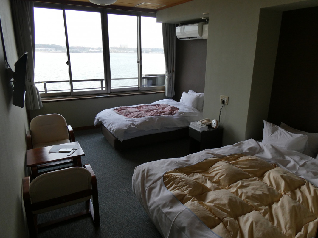 ただ、ツイン洋室のベッドは、一つはダブルサイズですが、もう一方はシングルサイズとアンバランスでした。エキストラベッドのようで、少々残念でした。1 / 3