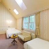 お部屋もツインですが、細長い部屋のあっちとこっちにベッドが別れてます。一つはシングルですが、もう一つはセミダブルなので、添い寝はできるでしょうが、お子さん連れにはこの部屋は…。