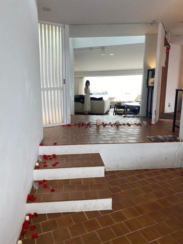 彼の誕生日に宿泊。スタッフの方がキャンドルとケーキと花束の用意をしてくれました。「WEST side Villa」の客室は、どこにいても切り取ったような海が見えて素敵でした。客室では、彼と一緒にジャグジーバスを楽しみました。ディナーはシェフを呼んで客室のキッチンで調理してもらい、テラスで水平線に沈む夕日を眺めながら。朝は自分達で料理をして、外のテラスで味わいました。