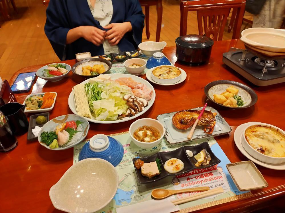 とにかく部屋から見える紅葉がとても綺麗で、浴衣に着替えてから記念にいっぱい写真を撮りました。足湯が無料で利用できて、ロビーにあるコーヒーを24時間無料で飲むことができたのも嬉しかったです。夕食が豪華!会席料理が豊富で、お刺身や鍋や新鮮な野菜が美味しかったです。朝は和定食に舌鼓。焼鮭とおかゆとお味噌汁などを美味しくいただきました。