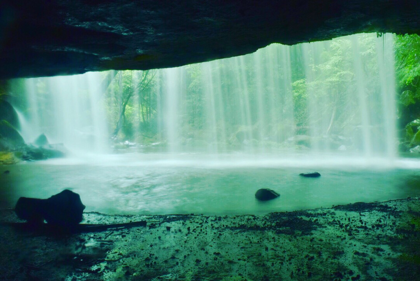 宿から車で5分〜30分ほどのエリアには、日常を忘れさせてくれる美しい場所がたくさんあります。ドライブがてら寄り道をして、心をほぐしてはいかがでしょうか? 写真は、テレビのCMなどにも使われたことでも知られる「鍋ヶ滝公園」。滝の裏側に回って見ることができる神秘的な滝で、しぶきが心地よく爽快な気分になれる場所ですよ。