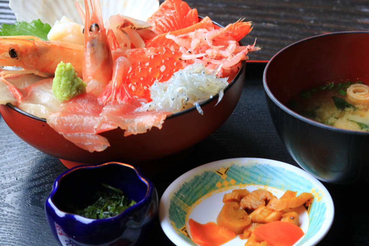 お待ちかねのお食事では、ボリューム感満載の海鮮料理を味わえます。創業期から伝わる人気メニュー「金目鯛姿煮」を味わえば幸福感に満たされますよ。なんと朝食では豪華な舟盛りが!お客様が夕食時に「お酒を飲み過ぎて舟盛りを食べ忘れた」と嘆いていたことが提供のきっかけだそう。