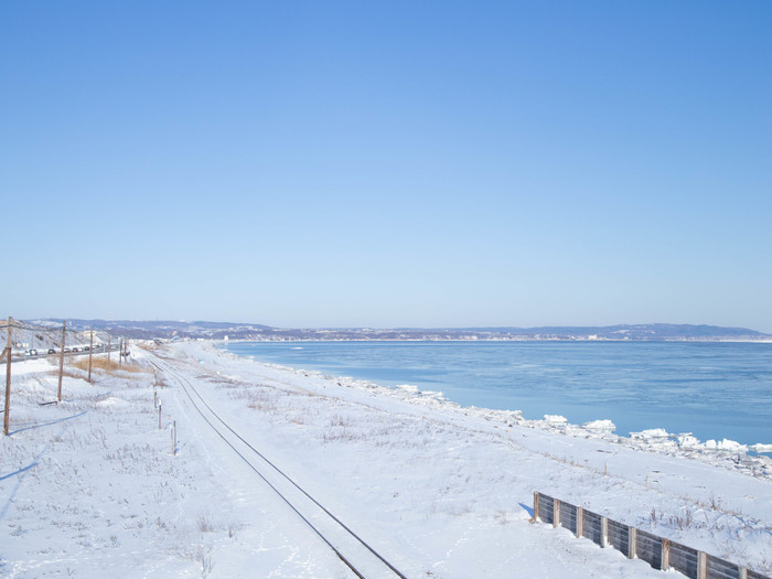 「網走駅」と「釧路駅」を南北に繋ぐ「JR釧網本線」。「網走駅」から15分ほどで“オホーツク海に一番近い駅”として知られる「北浜駅」に到着します。冬は一面に雪が積もり、どこまでも続く銀世界とオホーツク海のコラボレーションに見入ってしまいます。タイミングが合えば流氷が岸に打ち寄せる様子が見られることも。無人駅ながら待合室には今まで訪れた人々の想いがギュッと詰まっており、心をほっこり温めてくれますよ。たまには都会の喧騒を忘れて、静かな列車旅でノスタルジックな雰囲気に浸ってみて。