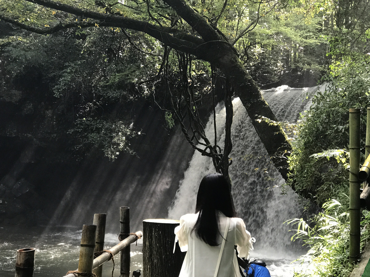 滝のすぐ近くで湯につかったり