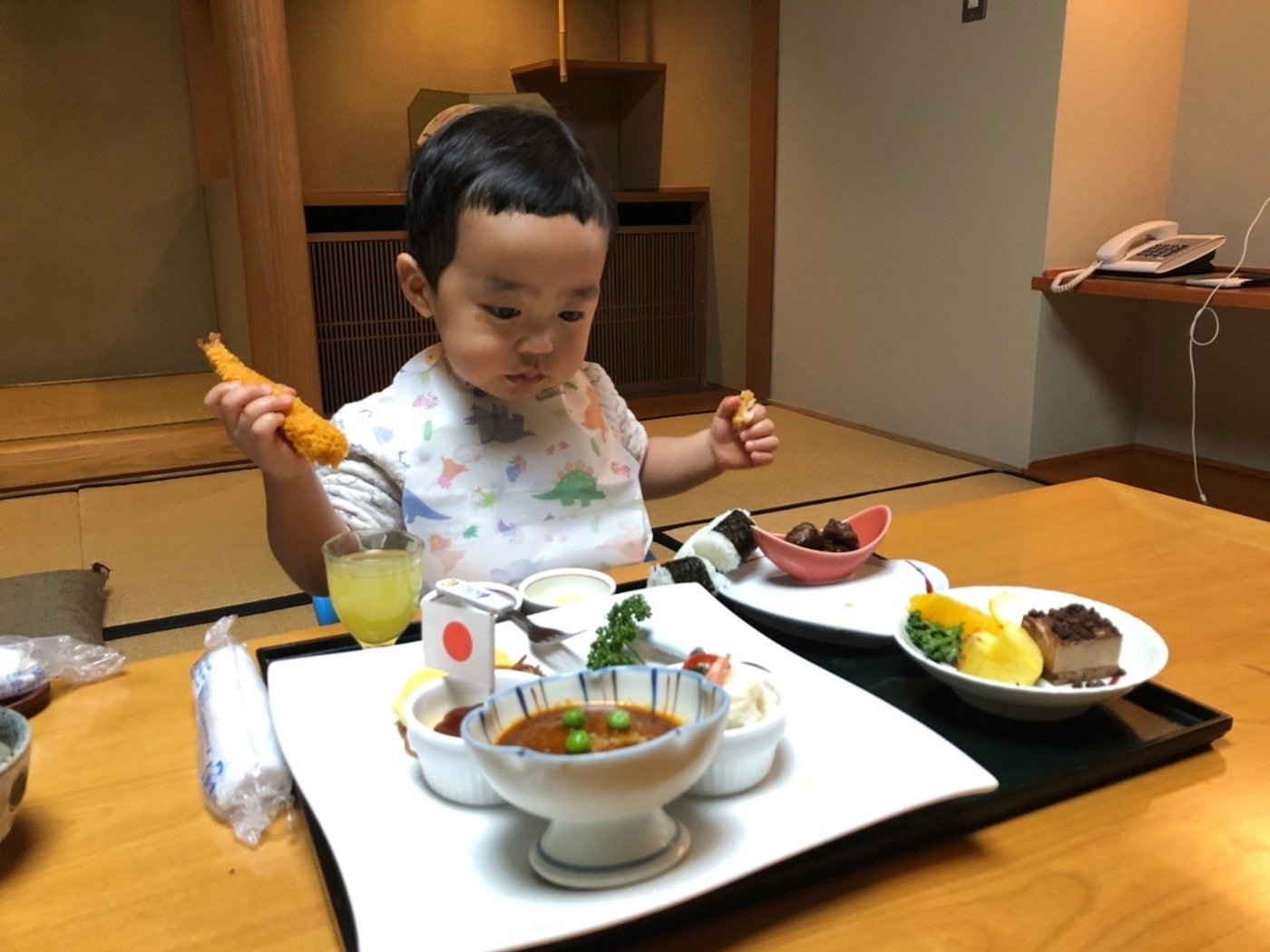 「赤ちゃんプラン」にすれば、たくさんの子ども用グッズを貸し出してもらえます。ベビーバスに全身用シャンプー、ベビーローションや湯温計、綿棒、ベビー布団、サイズの選べるオムツにお尻拭き、おねしょシーツと至れり尽くせり。夕食はお部屋食で、貸し切り風呂も無料なので、普段は忙しくて一緒の時間がなかなか作れないパパも子どもとの時間をたくさん作れますよ♪